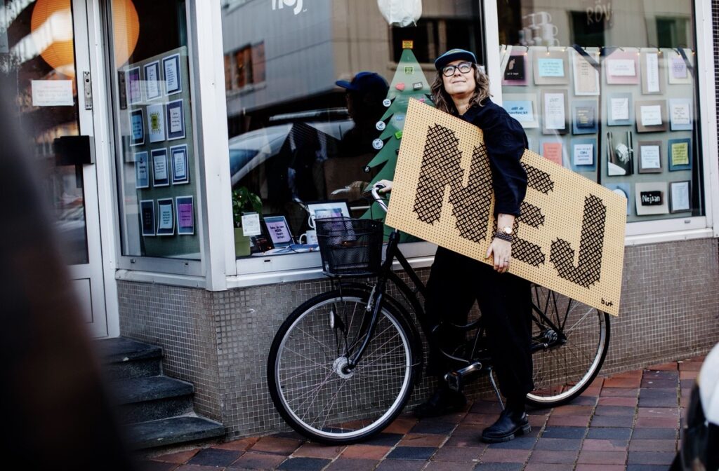 Textilkonstnären som syr ihop sårbarhet med humor och låter orden vila i stygnen.